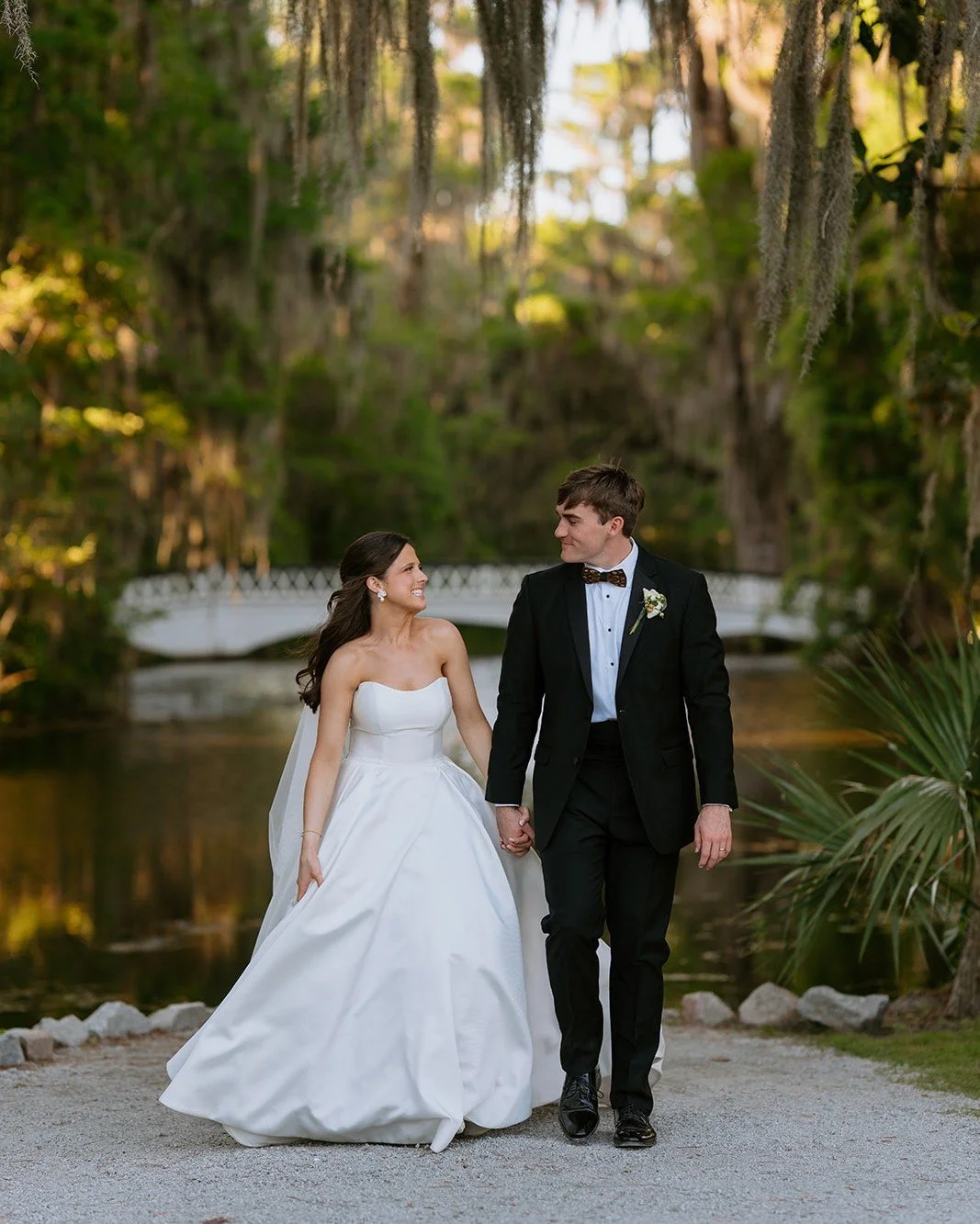 Magnolia offers two locations for an elopement ceremony at either the Live Oaks Lawn and Pavilion or the Long White Bridge.